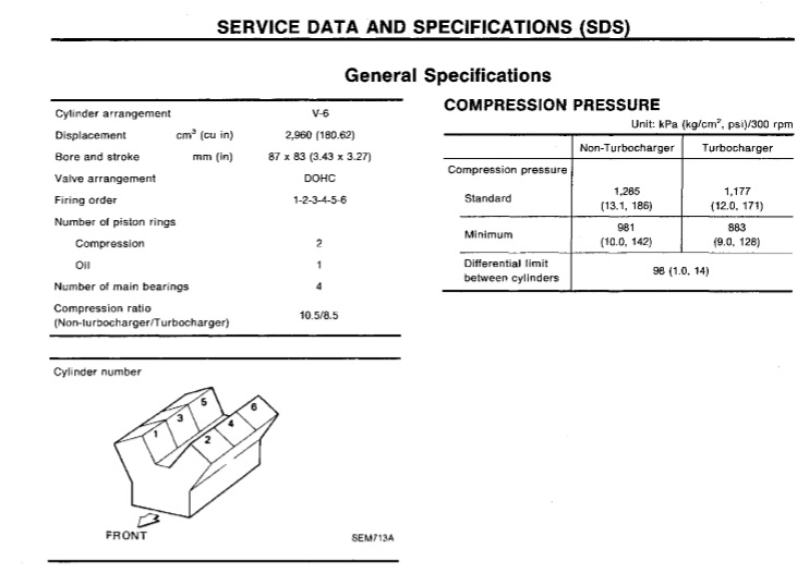 Hi Guys, 2 points 1 Which pistons are serviced by which spark plug/that long black thing that does the electrics,(see what i mean, my brain has gone) What i mean is , if you are standing in front of the car looking at the engine you have 3 cylinders on the left etc..., at angles both on the left and right are the spark plugs and , i remember ! Coil packs (phew!) but does the , for instance, first plug/pack on the passenger side (your right) fire up the front left or right cylinder. Without ever stripping one down or being able to find some piccys, i'm finding it hard to work out in my head. Because it goes between the inlets on the other side, in my mind, the ones on the right, service the cylinders on the left.am i right, wrong. Dont worry once i've gone you will no longer have to put up with my brain injured questions... 2 the 300zx pdf manual has this diagram for piston numbers, is it right?