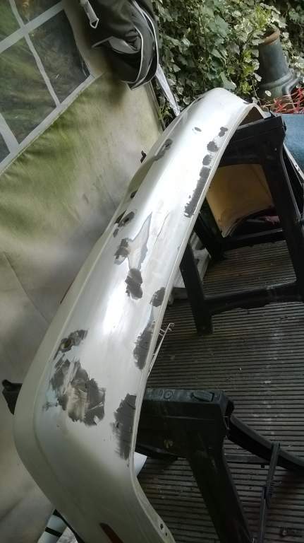 Decided this morning (after a restless night) to finish sanding my rear bumper and put some plastic bumper filler on the worst depressions, As you can see from the picture all went well. So This afternoon i get my sandpaper and start rubbing, only to discover i had forgotten to add the hardener..... DOH!! Words fail me...