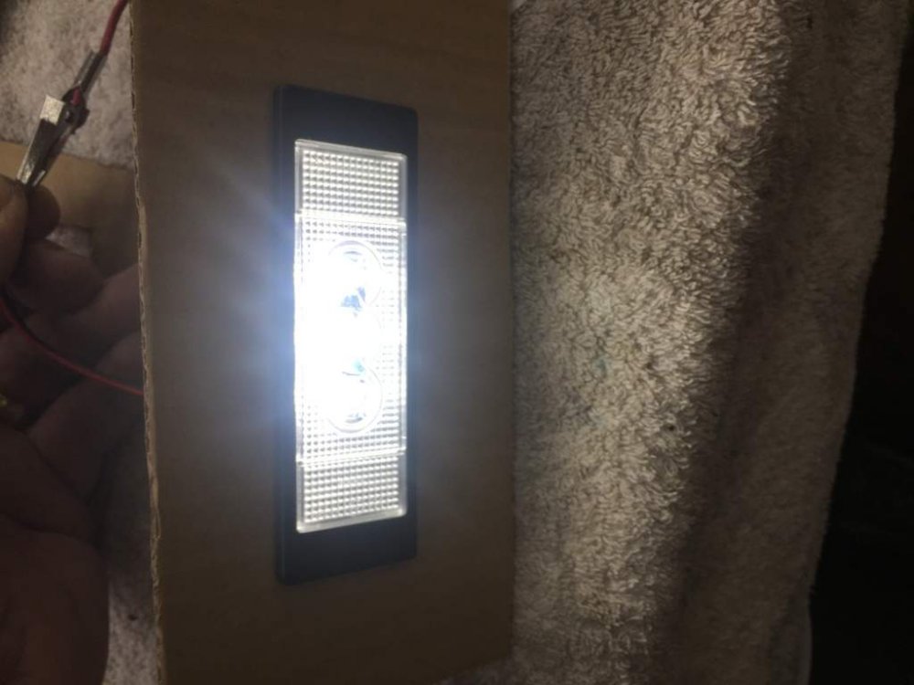 16. Due to the foul weather, I only managed to remove the front bumper this morning, so moved into the garage and had a play with some electrical items that I need to sort out. EL panel fitted (had in a box for 6/7 years) Made a template for some new rear number plate lights to do away with Mickey Mouse ones that do not illuminate anything.