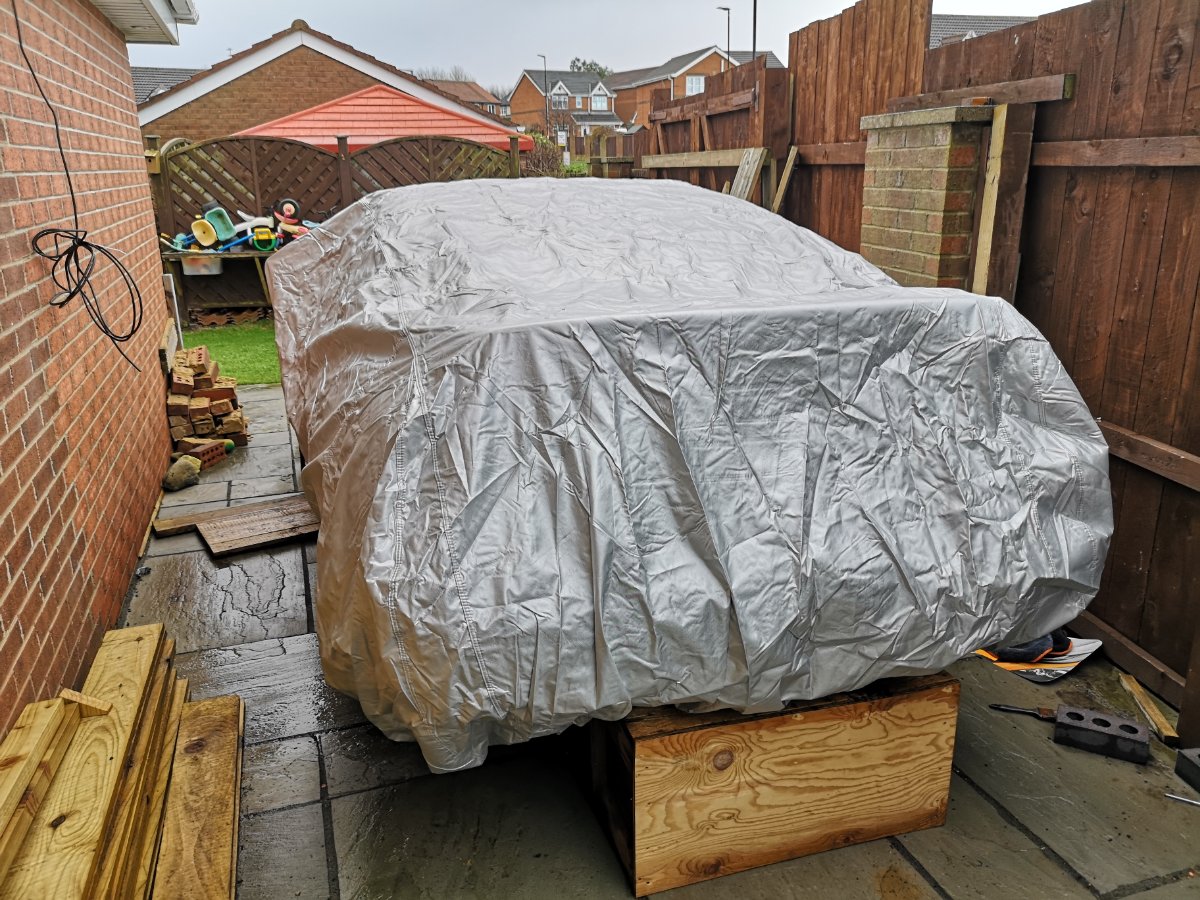 Today I discovered that one of the targas doesn't seal properly and found a nice layer of ice on all the interior glass. Sorted that out, stuck in some dehumidifier boxes and a reusable dehumidifying pillow. Then placed the new cover over the top. Away to work tomorrow so this will keep any extra moisture out until I get back from sea in 3 weeks and can investigate more.