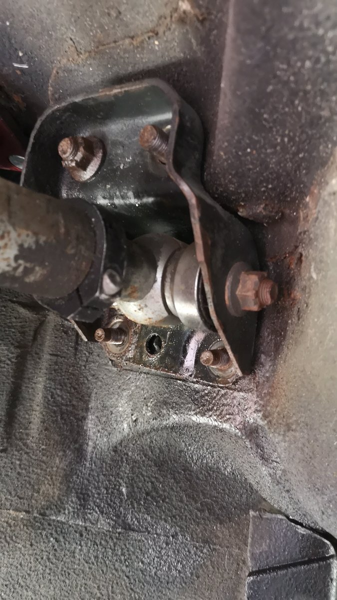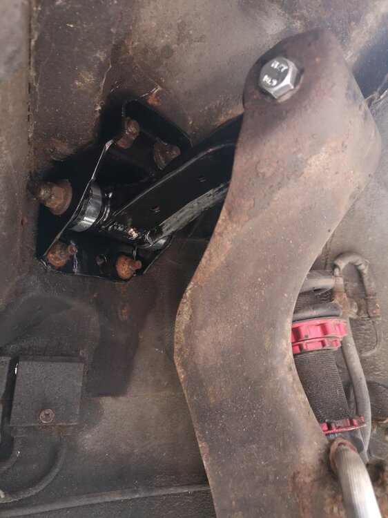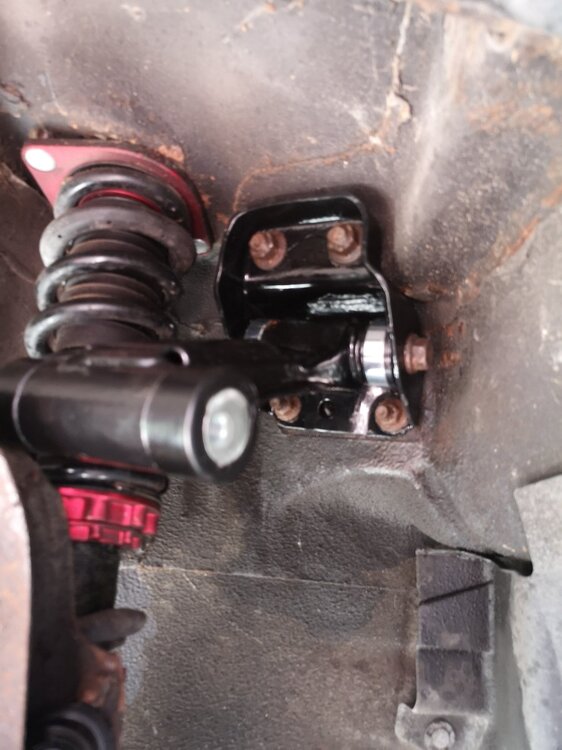 It's what comes with the Whiteline kit. There's a bolt either side into a threaded tube instead of a through bolt. The one on the other side is longer and has a locking nut to assist with camber adjustment. It's missing it's split washer in that image, but I've since found it and fitted it.