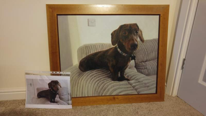 The photo of the painting does it no justice at all. I know it looks good but when I received the rolled canvas and finally got it framed I was gobsmacked that someone could possess so much talent. I struggle to draw a straight line.