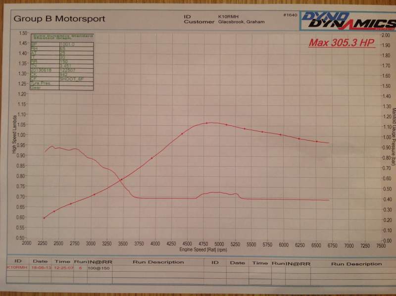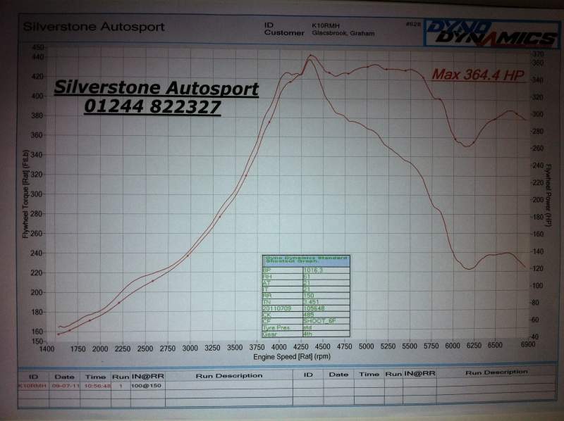 Put mine on dyno at GB motor sport to see what hp running, although the cars running like a old tram:-( uneven tick over back firing and coughing like an old dog,it still made 365.7 hp,told me if it was set up right with the new injectors that have been fitted should make good numbers,see print out apparently his has never seen a car ever running this lean:ohmy: well least I broke the record for something:)