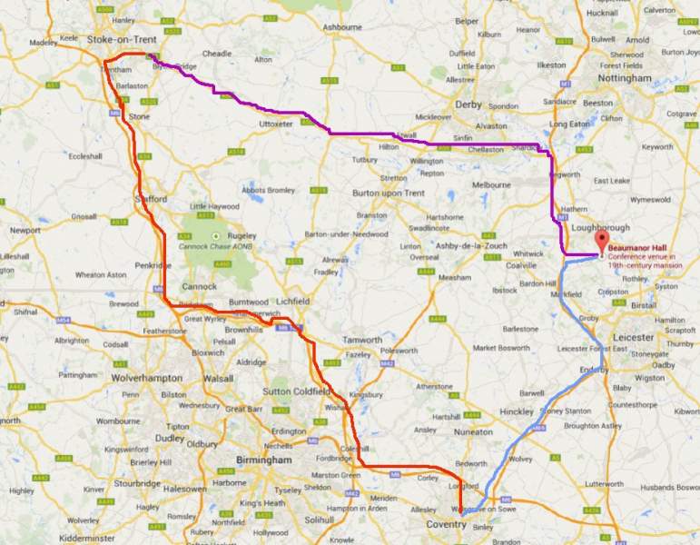 OK so this is for anyone wanting to make the weekend of it.... I did mention it way back on the 25th Anniversary thread but thought I would start a fresh one here for anyone wanting to continue the celebrations after the Coventry meet We are hosting a barbecue/party on the Saturday evening of the 19th July at our place in Stoke to commence once we get back from the 25th Anniversary meet at the Coventry transport museum :) Anyone who would like to come along is welcome to join us. It's about an hours or so run up from Coventry to our place and if anyone fancies it we could run up the M6 toll (i.e. Big Empty Road!!) in convoy - maybe even get someone to take pics or video off one of the bridges while we do it. Pretty much all the way from the 25th Anniversary meet to our house in Stoke is motorway/dual carraigeway There are lots of cheap hotels in Stoke for anyone wanting to stay over (and I can also put a few of you up at my place and my dads place - he kindly offered - for free but first come first served) And then on the Sunday there is a classic and sports car show at Beaumanor Hall near Loughborough, Leicestershire http://www.transtar-promotions.co.uk/home/beaumanor-hall/ I will be arranging some passes for this show (it's the same organiser as Weston Park, Trentham and Shugborough) It is about an hour run from Stoke to Beaumanor Also anyone who is staying at Coventry on the Saturday night could easily get from Coventry over to Beaumanor on the Sunday if you like (M69/M1 is a pretty direct route) And finally of course, if you can't make the Coventry meet but would like to come to the Barbecue & Party on the Saturday evening and/or Beaumanor on the Sunday you are more than welcome See the attached map for some idea of the geography Coventry Transport Museum -> dicky's place (red line) = 66 miles 1hr 14min via M6(Toll)/A500 dicky's place -> Beaumanor (purple line) 49 miles 56 mins via A50/M1 Coventry Transport Museum -> Beaumanor (blue line) 37 miles 47 mins via M69/M1 So to recap If you would like to come to the barbecue & party after the Coventry meet on the Saturday.... please let me know If you would like to attend the Beaumanor show on the Sunday either joining a convoy from Stoke or from Coventry (or just going directly there)..... please let me know If you want free overnight accommodation ask, but can only accom a few of you! So why not make a weekend of it? Rich
