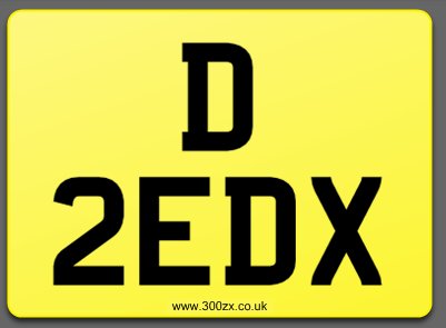 Well if anyone is looking to treat themselves There's quite a few Z relevant plates around cheap it would seem.... A 2X followed by various combinations of 2 letters currently available on plates4less at £158 (will cost about £250 with VAT and transfer fees) E 2XTT which I quite like is £284 and is suitable for any turbo Zed P 2XTT £158 if you have a later registration plate eg a 99 spec W/X/Y 300TT all available (does anyone have Zeds on such late plates?) I like this one M12 XTT (MI ZX TT) which is also £158 but needs an M Reg or later car E 2ED X is available too for £284 J/K/L/M/N 300 TUB all £158 J/M/P/R/T 300 LWB all £158 P/R/T 300 SWB all £158 J/K/L/N/P/R/T 300TTX all £158 There must be loads more too, those are just a few combos I could think of with half an hour spare to look Rich