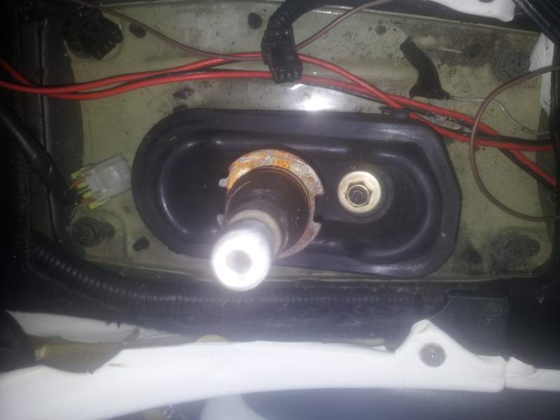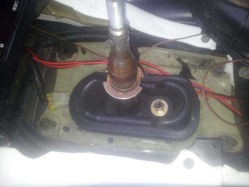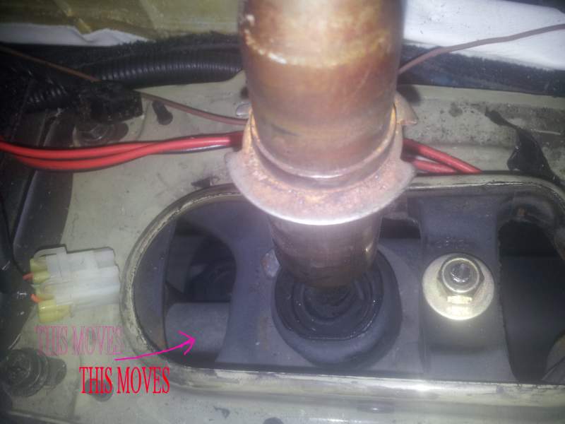 OK Got it Once that nut is removed the whole whing was loose so I popped it back on once I reoved the rubber gator Can't see anything here that would stop the gearstick moving - push up into 5th selects easily, I just can't move it down past center into reverse but down into 2nd/4th is easy Rich