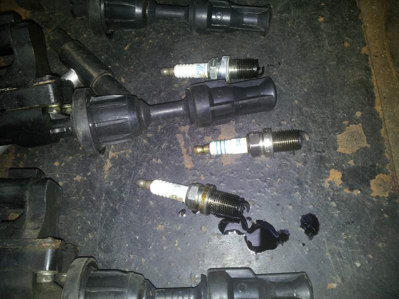 The local garage (who specialises in Jap cars actually) had a good look for me today, so now there are some facts to go on The compression result is 180 for every cylinder - which he tells me is perfect There is a lot of oil getting into the nearside bank of cylinders, especially the rear one (cylinder 6 I believe now someone pointed out the correct numbering) I have some pics of the some of plugs - the one from cylinder 6 is the one with the most oil as seen in the attached pics, he tells me that all came off the plug! The dry one is of the offside bank. He had a borosacope down each cylinder and can't see anything obvious wrong apart from number 6 is coated with oil and there is also some oil in 4 and 2 There best diagnosis is either valve stem oil seals or fauklty oil rings on pistons Due to the amount of oil combined with the perfect compression results he favours valve stem oil seals being the culprit. He says this is especially likely if the engine has stood for a long time. Does that sound likely? Rich PS here's some plugs to look at......