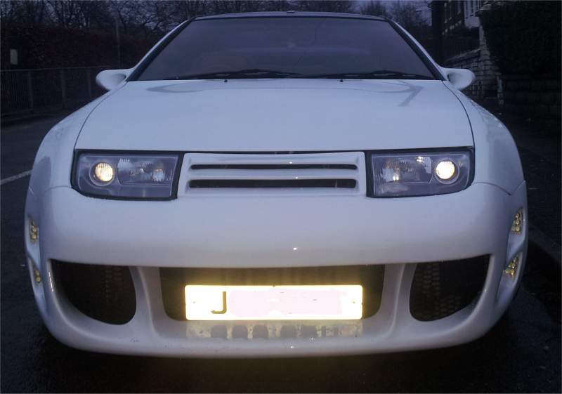 OK It's done and I like it :thumbup: Thanks to the various advice on here I made a few changes to the body kit In the end I left the bonnet bulge off - but have it sprayed white should I change my mind Personally I don't mind it being on, but like the car without it too The front bumper is the Viper V1. I had to get the centre part of the bumper modified so it sits level with the headlight panel The rear bumper is a Shark V1 but very much modified so it's hardly recognisable asa shark. However IMHO it looks great on the car and the tail pipes sit very nicely against the bumper now The side skirts are Demon - but with the vents modified to fit DRLs The wheels are Dotz Hanso 19" I have ordered some centre badges wit ha white Z on a black background but they are not here yet I've posted the pics here as no one can reply to my journal and I would of course like to hear any comments positive or otherwise The custom DRL / Indicators as most will know are my own design Some ideas are shamelessly stolen from pics of other members cars on here so I hope no one minds Anyway pics speak louder than words so here they are dicky