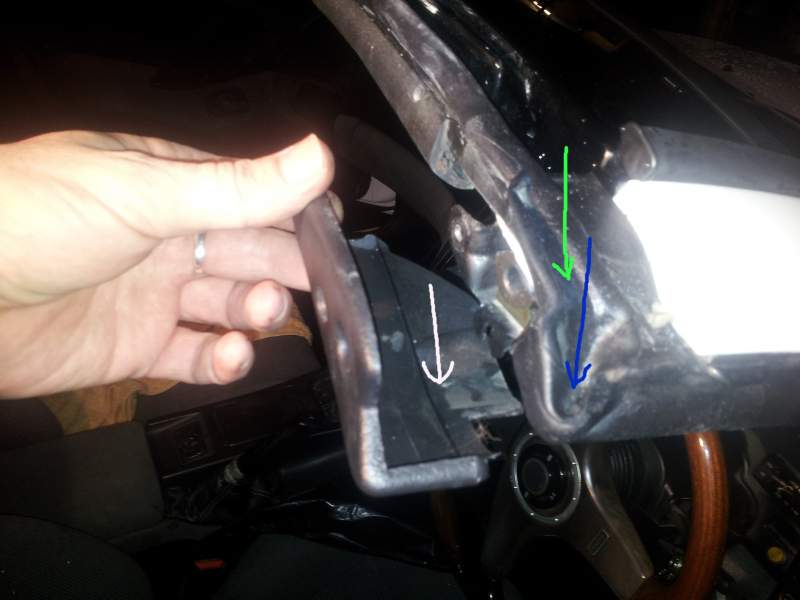 Hi znut Its like a slightly closed hole but I (gently) fed a cotter pin about 2 inches or so in.... so it definitely has a channel inside there, at least on mine @vods - no I think the larger hole is near the green arrow on my third attemp below - I wish I'd taken more notice where it is this is like pin the tail on the bloody donkey lol , but I really don't think that hole is causing the problem How do I stop the water getting into where the white arrow points?