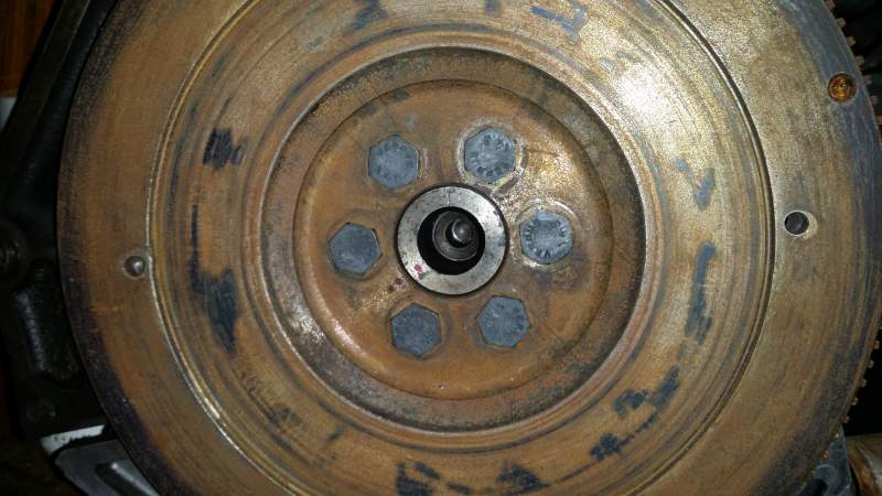 Damage to the flywheel above. And below :-) I really hope it is what I think it is. ( I would appreciate any advice on how to drive a LSD FWD car. I have learned how to left foot brake properly, over the throttle to bring the tail round a bit like a more gradual handbrake turn at speed. Hyundai coupe 2.0 lol, knackered front discs now) Audrey would like some coaching in the art of driving like a teenager and I am only too happy to help.