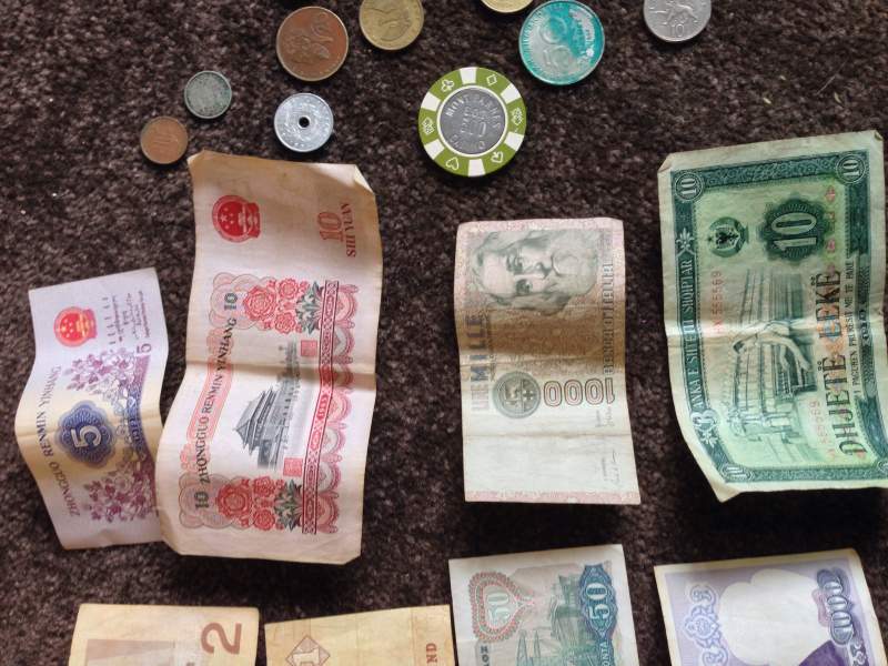 Well I'm moving into my new home and whilst in the attic I found some money all looks out of date but is it worth anything ? Enough for a pint? Canadian 2 dollars zhonggu renmin yinhang 10 and 5 Egyptian 1 pound 1000 Lira 50 APAxMAI sounds Greek Turkish 1000 Bank E SHTETIT SHQIPTAR A few coins and a 500 Mont Parnes casino Athens coin - Wheels from 350z