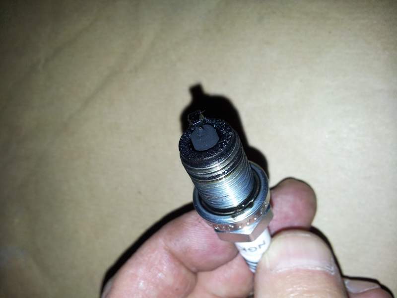 Thanks for info guys! So, the matter was to find spark plugs in Reims today, and I could get 6 units BCR8ES (the BKR 7 EIX-11 are on order as not avaliable). I took some time to get the actual plugs out, and they are BKR8 EIX... black as if they stayed in a fuel chimney for years!! The pictures... They are all six the same. Not wet (they ran on Sunday for about 5 minutes around 1000 to 2000 rpm). I changed them for the ones I have BCR 8 ES gapped 0.9 mm. Before I try to restart, I would like your opinion. It looks like the fuel is much too high, at least for idle, and that's all the car has tried to run since Two years! However, when I started it on sunday, the AFR readings were not showing crazy numbers as they were around 11/14, and the garage was not filled with dark smoke. So could this come from multiple attempts to run it just warming up, without cleaning on the road? Maybe I should start and see how it runs with the new plugs, and after a warm up session, check two or three again to see if they become really black? I have to solve matters for the technical control (MOT equivalent) to have it registered before I can go for a ride on the road...