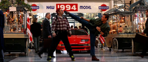 Just started on Spike, a scene in a mall and there is a Nissan banner and on display is a 1994 Red Nissan 300zx TT