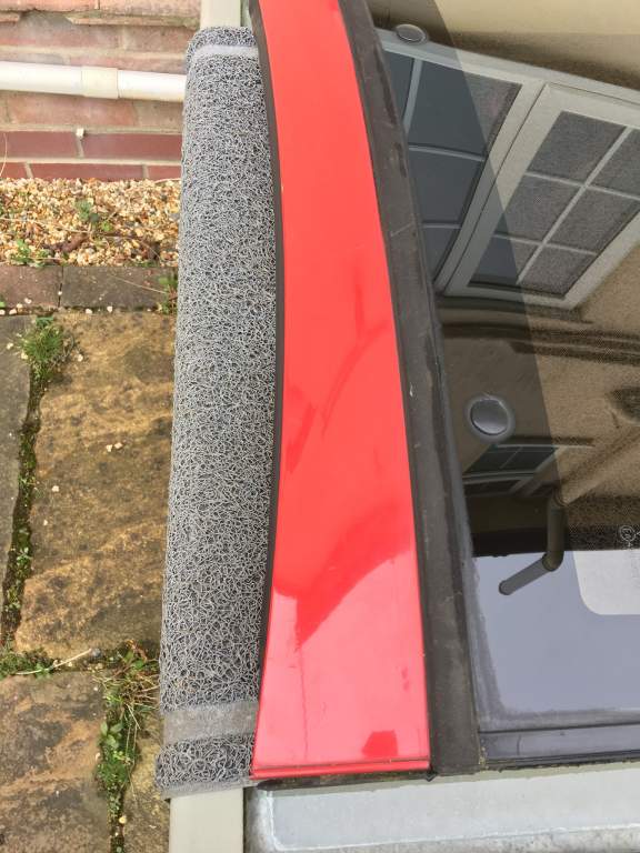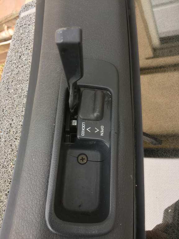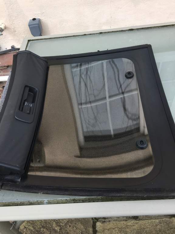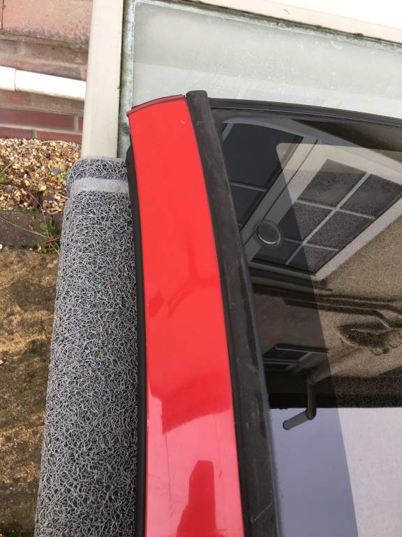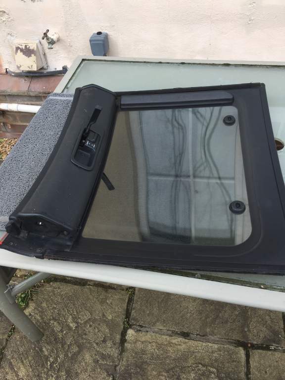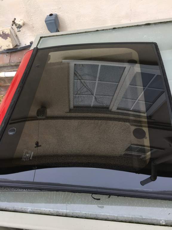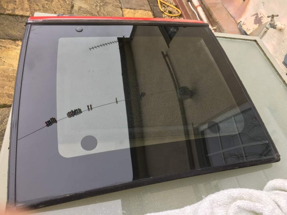 Drivers side Taga glass has minor scratches tried to photo. The plastic surround is cracked as in picture.