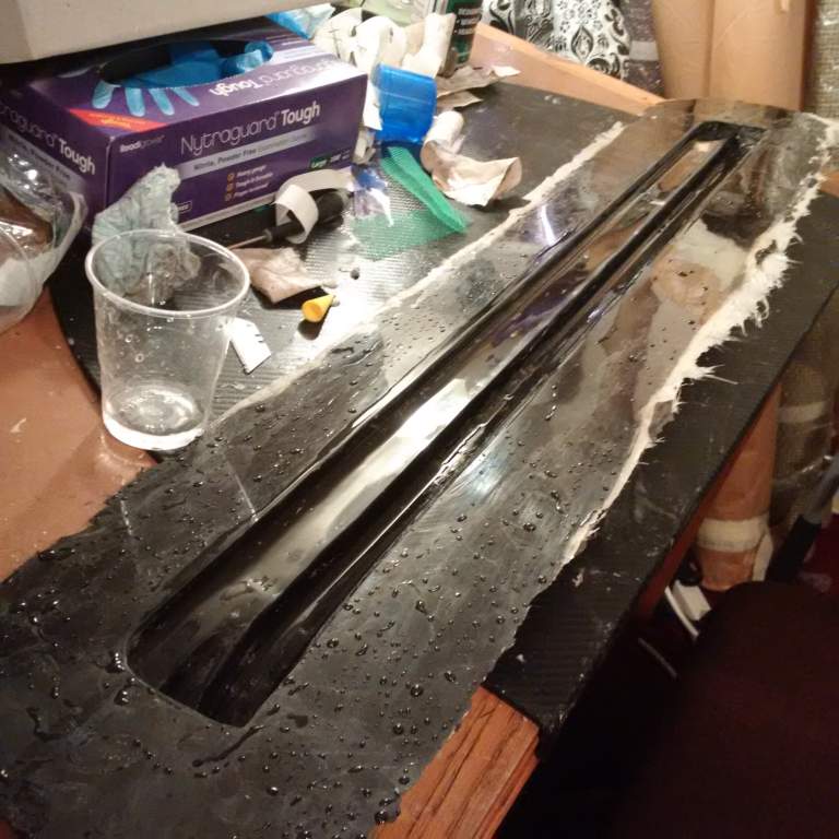 First second and third test of resin infusion. Initial two tests suffered from resin starvation, but I have the process and materials sorted now and the latest one is mirror smooth. This was 4 layers of 200g carbon twill weave. I am just doing the final few layers of fibreglass on the mould for the sills and then I will run a test infusion for that. It is a shame that with limited time in the evenings this process takes ages as each time you leave the part to cure you have to wait 24 - 48 hrs!