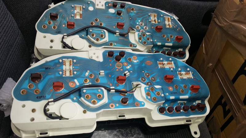 Ok. Bottom Speedo clock is off a UK 1991 TT. Top one is my 1991/2 Jap clock in kph. Trying to swap the two, but there are obvious differences in the connections...also, you may notice that the centre connection on mine only has 2x pairs of double contacts, whereas the UK one has 2x pairs of 3 contacts. Can anyone advise on fitting?- start of front sub frame refurb and uprated socks