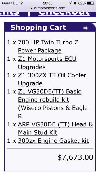 Yeah my baskets at £5000 , really cannot be troubled with paying the £2500 just to have it here , looks like my only option is to source what I can from the uk and then get the turbos from the states as I don't know anywhere here that will do the garrett gt675 - Import duty/VAT