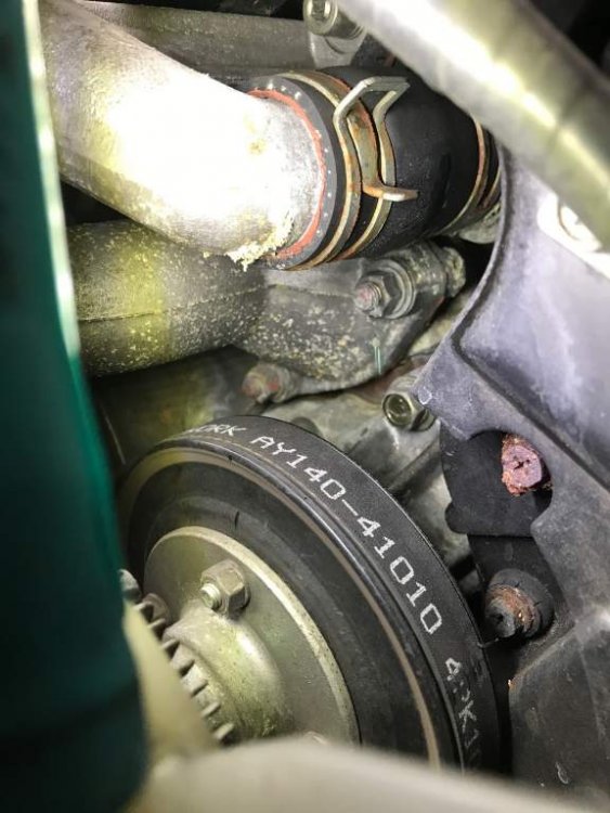 Morning all. After smelling a bit coolant-y last night, I found a puddle under the Zed this morning. After crawling around underneath and tracing the path back up it looks like it’s coming from the short black hose at the top of the picture - in fact you can just see a blurred drop falling in the picture (assuming it’s uploaded ok). If I read the manual correctly I think that’s one of the outlet hoses from the radiator to the head? If so, any pitfalls in replacing it - or advice on how best to get at the rearmost clip, which I can only just about see! Thanks, Chris