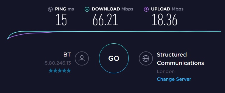 22. This is what I get in Eastbourne, its normally 76MB, but must be a bit slow today. Im liking your 350mb though! We pay £38 for fibre and a phone line with free weekend calls