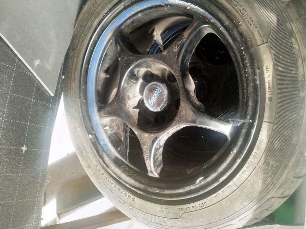 4. The rims with the tyres are in pretty good condition, but the tyres are not. They are JDM 225 for all four. The rims without tyres are in worse condition, but they are the UK 225 front and 245 rears. The black rim, I took off my old car before it got broken. There are four of them, however the last wheel nut (always the last one) wouldnt undo, so one front wheel and the hub were removed together still attached to the shock. Let me know if you are interested Tom