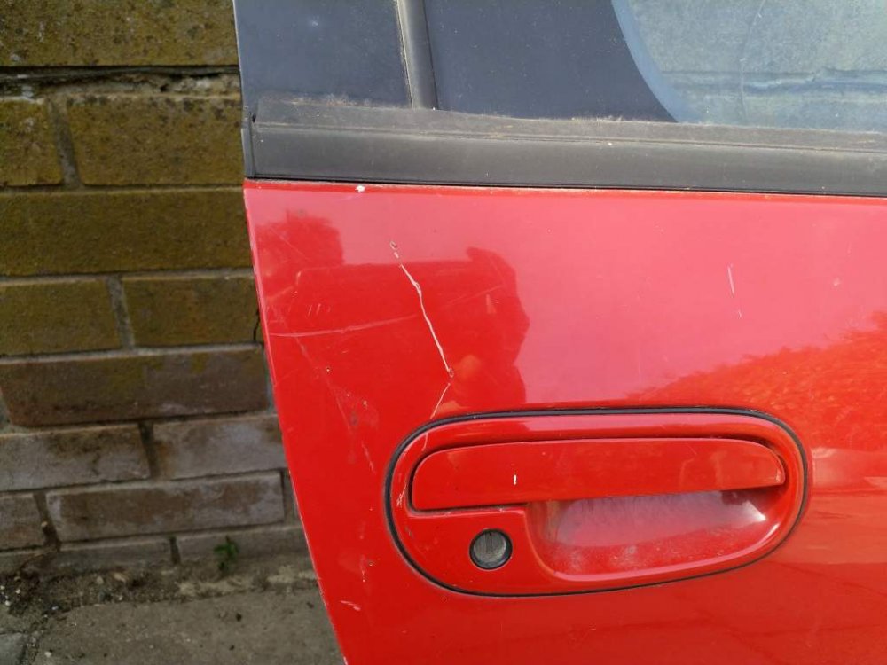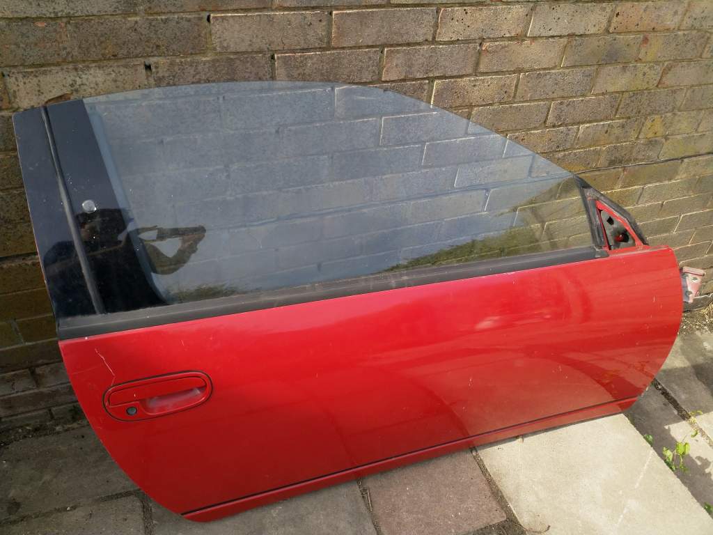 Drivers side door minus mirror and door latch mechanism. Glass seems ok. I was assured it worked when bought. Loom has been cut at door hinges. Paint is ok, Couple of dings and scratches. I do have a passenger door, but haven't pulled it out to check its state and take pictures yet. I know its missing a mirror (I bought door for the mirror), but I think the door mechanism is still there.