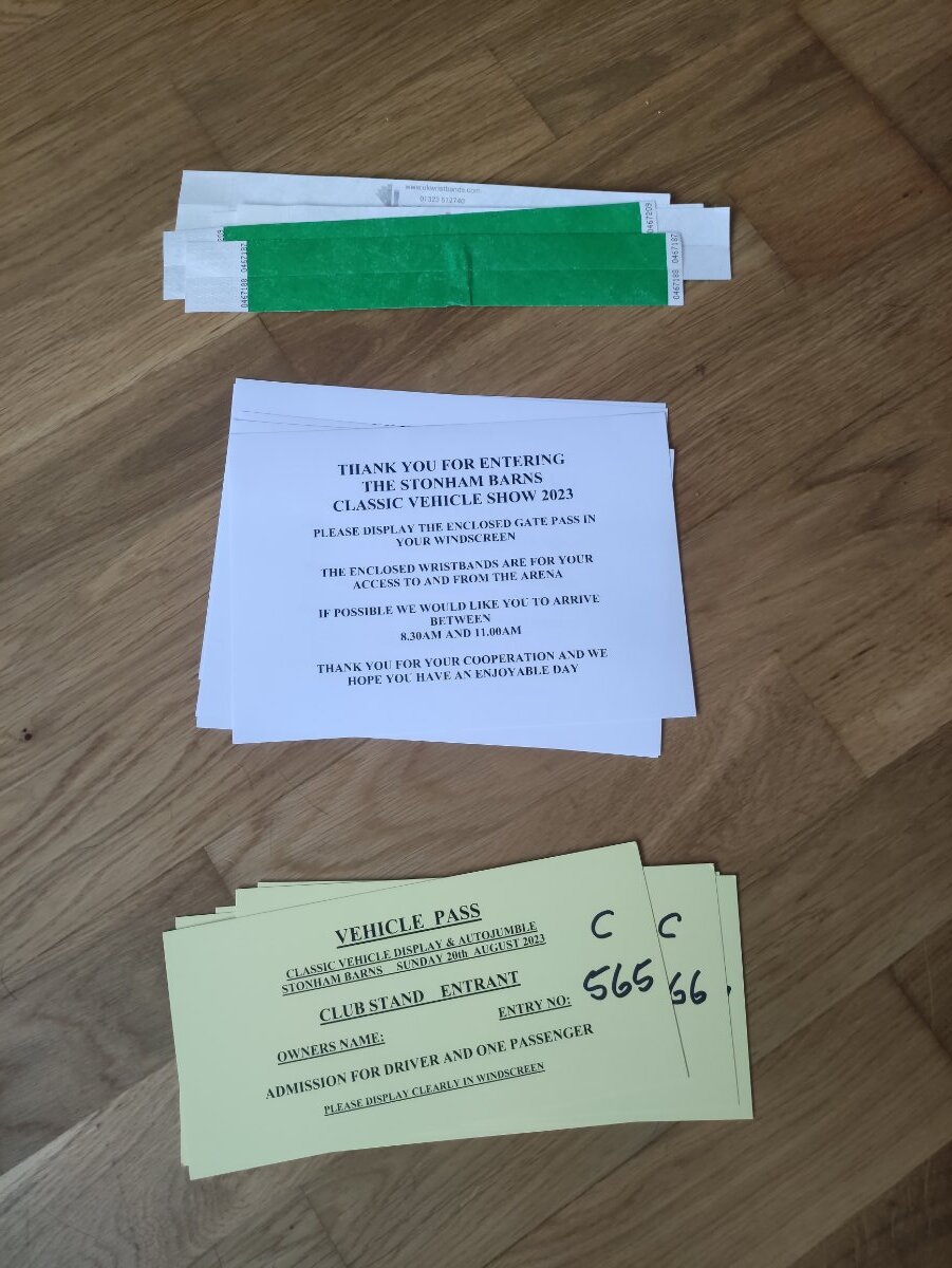 I have the stuff for the show. Bit strange though, we have ten wrist bands, five thank you notes and 6 vehicle passes!