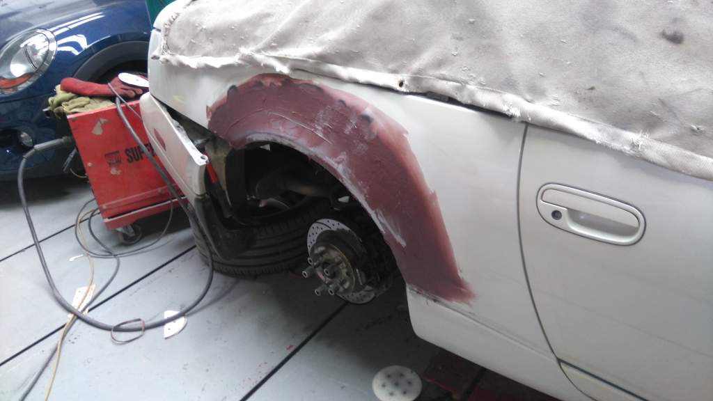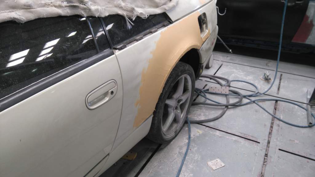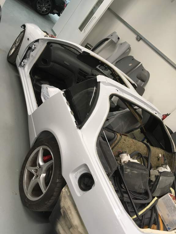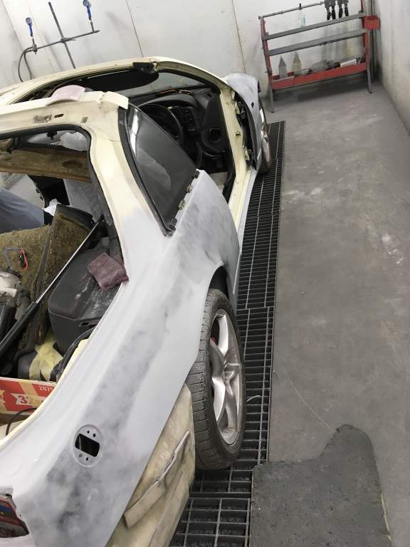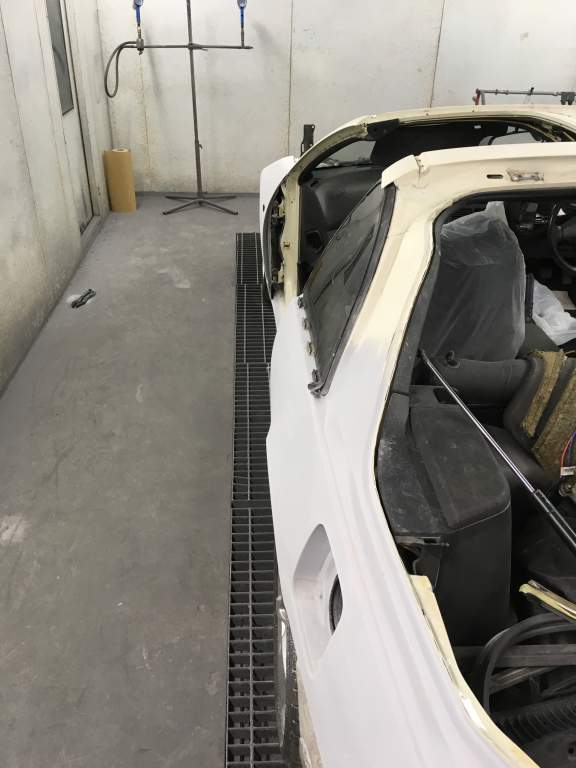 Weeks later and the car had finally been put into primer and in the paint booth! For the colour, i went for a bright and crisp white