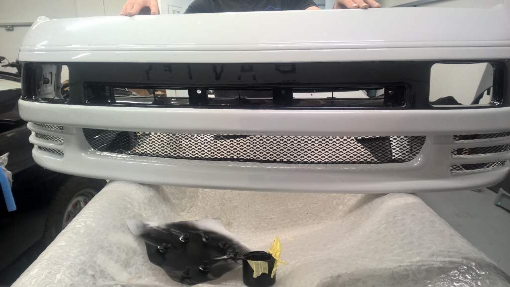 I asked that the bumper be layered in mesh to protect from stones and the like And this was then mounted with a new little bracket for the number plate so it can be easily removed for shows! And then had a lovely rim delivery too (18x9.5 ET38 - i think - all round)