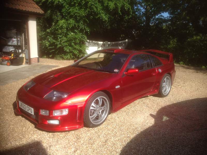 Too late now she's mine lol Off to a friends garage for full service and belt change. Slight wobble at 80 so wheels to be balanced, rubber is all good except spare. the little yellow alloy has never been out, but the tyre on it looks quite sad. Brake judder when braking hard so all disks and pads to be replaced, Calipers all move freely at the moment so will probably stay to start with. Scoop is toast! Wheels to be refurbed I'm thinking silver at the moment. Rear lights to be changed for LED venoms not sure on 4 or 6 lights at the moment. Respray may not happen this year but candy apple red where it isn't faded is stunning so I'm sticking with that. Undecided about the front lights I flip flop between uuuurrggghh and hmmmmm. Interior needs finishing in leather all over, I quite like the red trim to be fair, but there won't be any more in there. Change of steering wheel. Couple of shiny bits inside. She looks a totally different car in the flesh the pictures are a poor representation. Very very aggressive to look at with the wide arches and the lowered stance. Loving the spoiler as well - sorry guys lol. Overall incredible condition for a car that age. Drives straight and true pulls hard through all the gears. I'm guessing running around 350 BHP at the flywheel by the way it drives up against my 335d M sport xdrive. Which isn't too bad considering she's been sat pretty much for the last 8 years with just the odd run out. I passed a LWB red 300zx going up the A12 towards Ipswich at about 6.30 last night as I was heading down. Red with a big wing was all I saw so if that's anyone on here hello! The car has already been christened by my ever helpful friends as FBOD (Fiery Ball Of Death) If I do change the front lights I might send the old ones over to Twin Turbo :laugh: All in all I think a good strong platform for my 600BHP target. As I am married it may take a while to get there as the wife has a horse and for those of you who don't you couldn't burn money faster than that thing uses it. Many thanks to everyone and hopeful here's to some new friends :pint: