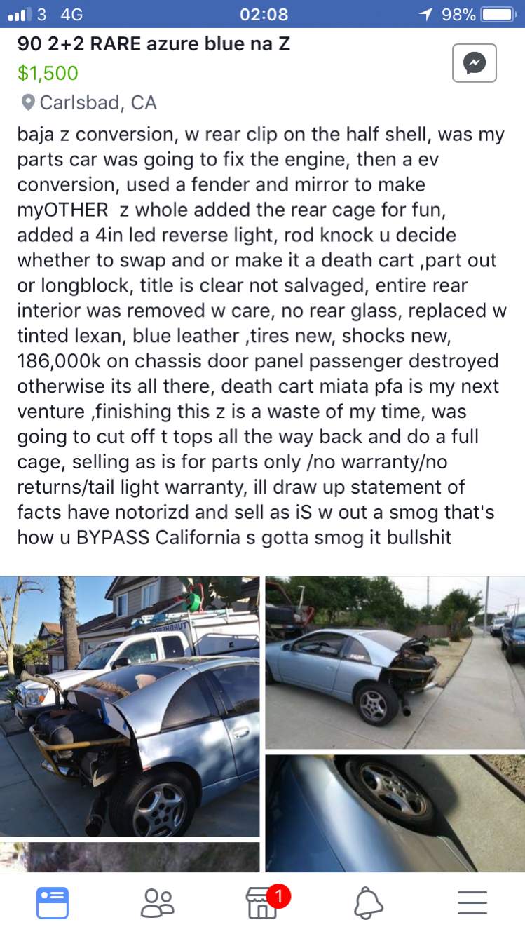 It would of made for a better for sale ad if he’d kept it all in one piece! How he can advertise it as a rare 2+2 when it’s only a 2 is beyond belief! He’s got balls though.... “I’ve cut up a nice looking car with a banjaxed engine, to the point where it’s totally destroyed and I’m bored, where it’s just an eyesore, but you can own it today for the bargain price of $1500” :whistling::lol: “Can everyone form an orderly queue” :whistling::laugh:
