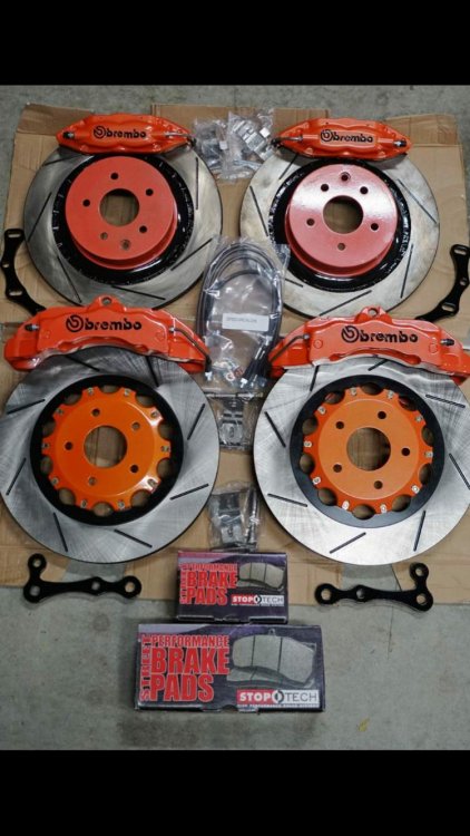:punk:Woke up this morning to find out I've won a Big Brembo Brake Kit!!!:punk:. Entered a raffle Stateside for a 6 piston Porsche brake kit, includes refurbed Brembo 17z Porsche calipers to be powder coated in a colour of my choice:innocent:, decals, stainless brake lines, adapter brackets and mounting hardware!! To say I'm chuffed to bits is an understatement :clap: I now have three different sets of 6 piston front calipers for the 300zx!!:drool: Question now is, do I sell my two front setups along with my rears and go for a complete custom colour, continue on as I am and sell the others, or sell them on in the US as I would still have to cover shipping and customs duties??