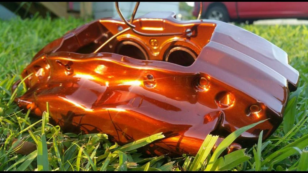 just to give you an idea.. The prize I won is valued at $950 without shipping or duties, there's no pads or discs included either. It's basically two fully rebuilt 6 piston Brembo caliper's with correct modifications for our cars, powdercoating base coat (in any colour), clear coat, Brembo decals, stainless brake lines, adapter brackets and associated hardware. I have a similar set for sale already Trev, which includes R35 GTR Carbon Ceramic brake pads, that's in the Parts for sale section for £950 shipped:thumbup1: